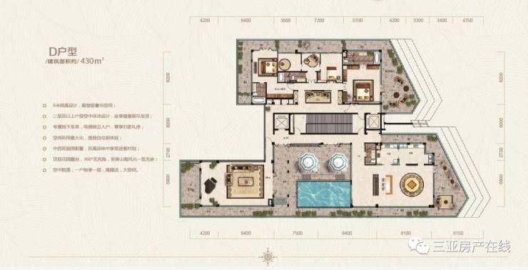 E户型:305㎡,6+2保姆房4厅8卫