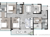 168㎡四房三卫:双主卧套房、南北双阳台,7米超大阳台尽揽园林,真正的高阶改善户型。