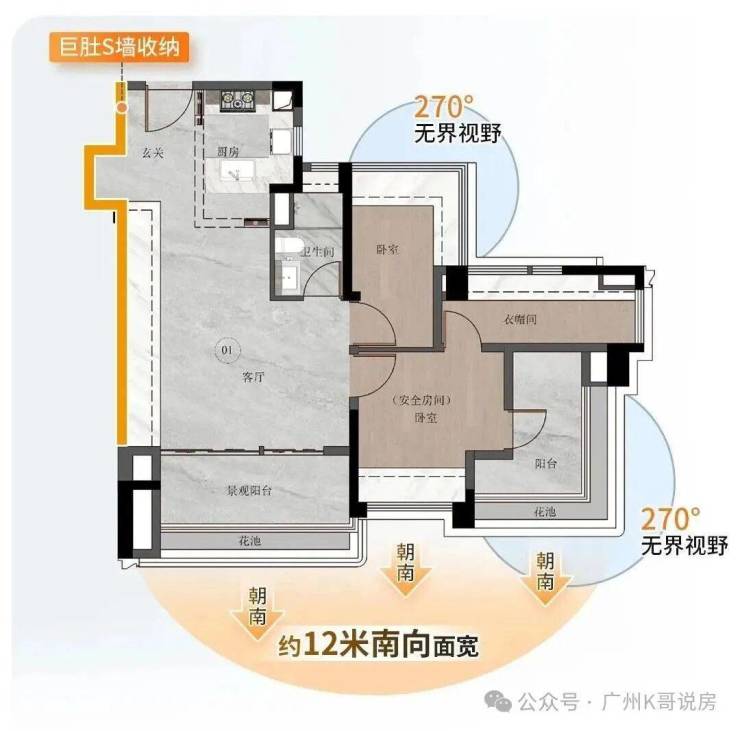 其二,更短进深,且全户型无遮挡,通风、视野效果拉满!