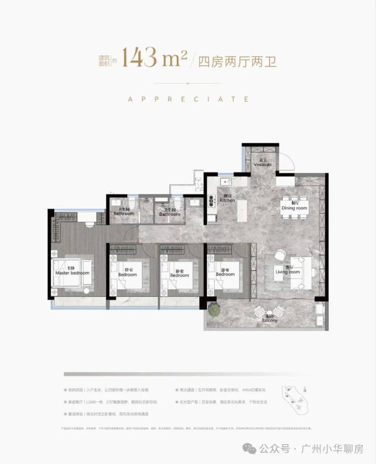 建面约103-186㎡南向阔景四房