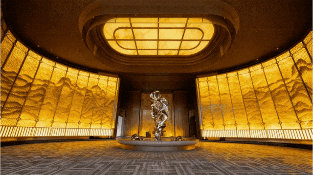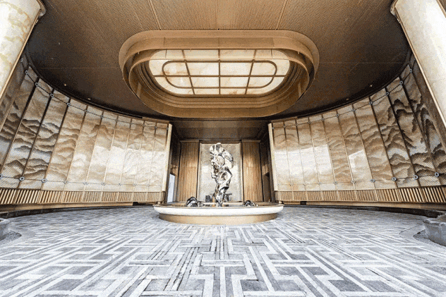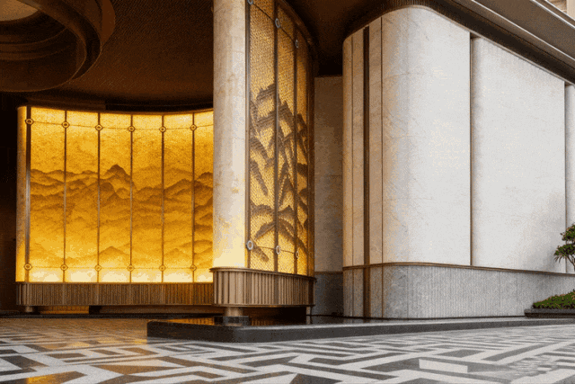 中央景墙的安第斯雪景大理石,如山势起伏,取意画中连绵山峦,静谧且壮阔。