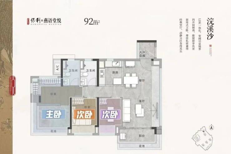建面约92㎡三房
