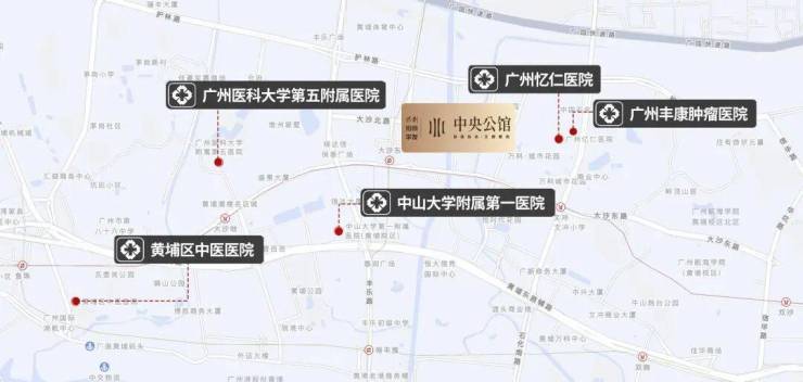 约1.5km即有中山大学附属第一医院东院、广州医科大学附属第五医院为您和家人的健康保驾护航