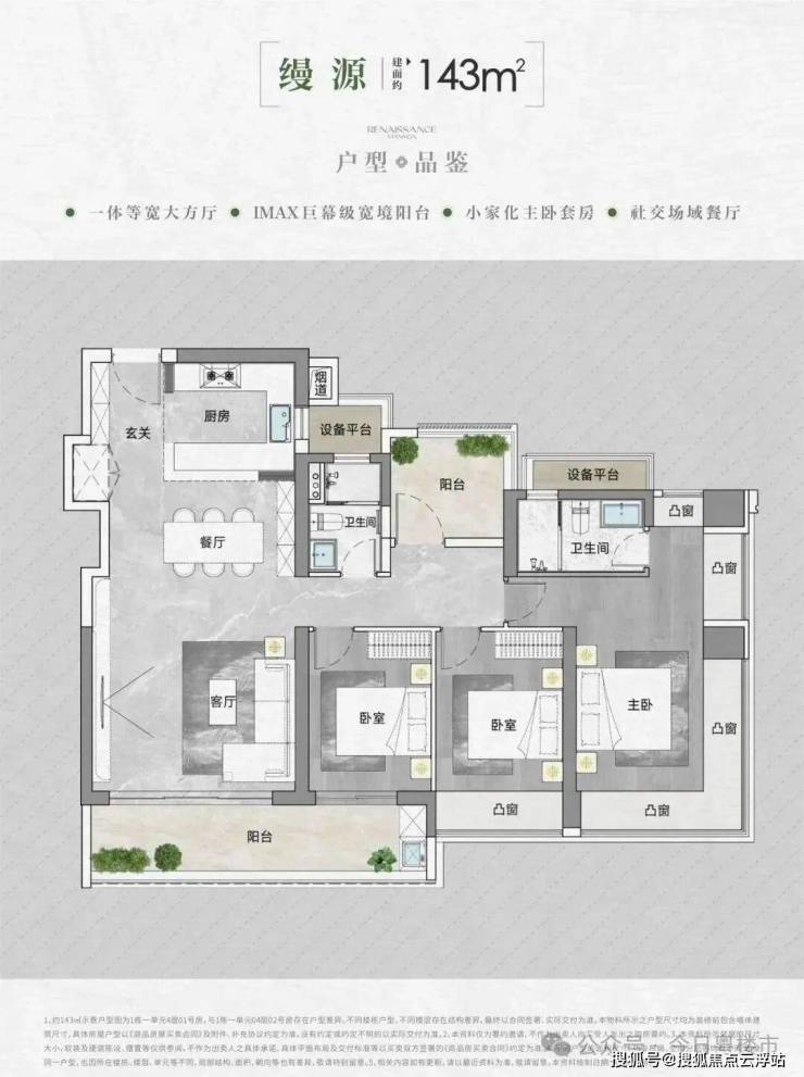 得房率:通过创新性的飘窗、双阳台改造、设备平台赠送等设计,实现平均94-96%的惊人得房率。