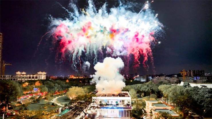 晚宴时分,嘉宾们共聚雅席,于璀璨灯光与静谧夜色中举杯畅谈,共话未来湖居生活愿景。精致餐酒与艺术桌花营造出高雅舒适的交流氛围。压轴环节的精彩表演将活动推向高潮,夜空绽放的绚烂焰火,点亮了每个人对理想生活的向往。
