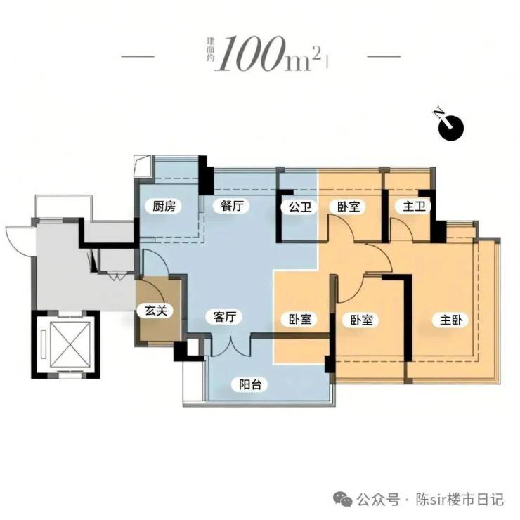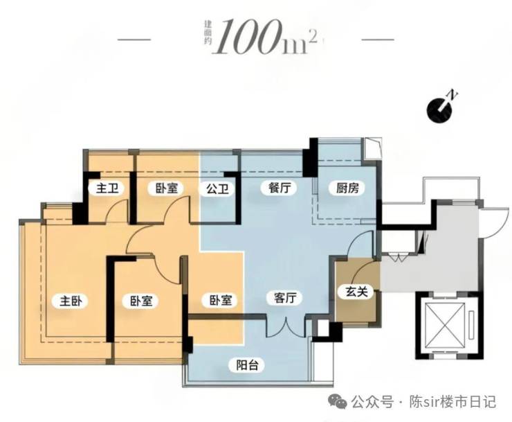优势:餐客厅南北对流且四开间朝南,100㎡内很少有;