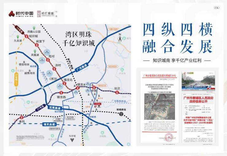 新白广城轨(在建):新白广城轨是穗莞深城轨的北延线,途径广州北站、白云国际机场、知识城、镇龙、中新、经济开发区等多个热点板块。通过【镇龙站】,可便捷畅达大湾区各大核心城市群。新白广城规预计23年9月投入运营,便捷交通体验近在咫尺。(信息来源:广州黄埔发布)