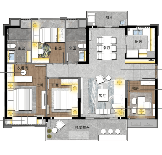 明星户型:建面约110㎡ (3+1房2厅2卫),超6米阔景阳台,朝南大横厅设计