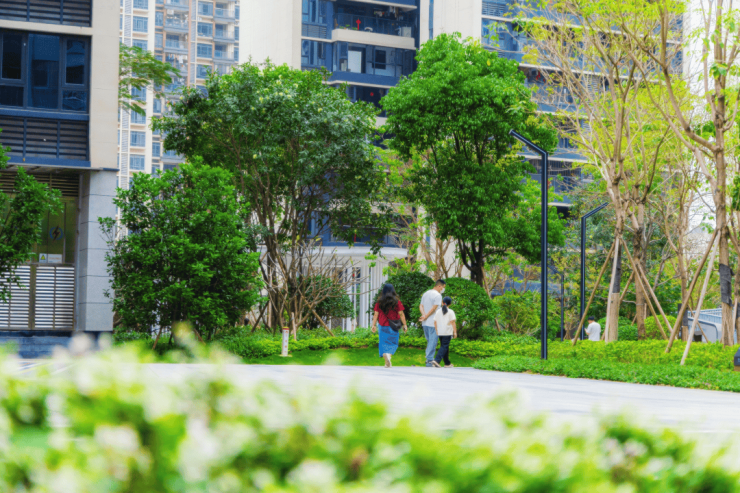 很多楼盘交付后园林是稀稀疏疏,这里满眼全是“森呼吸的氛围感”,葱茏繁茂的状态,肉眼可见。