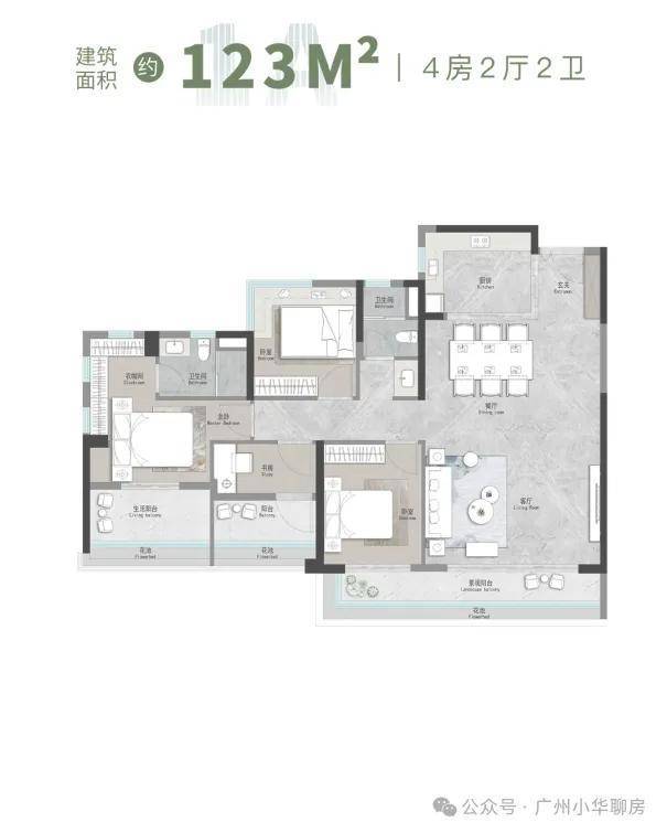 02单位|建面约123㎡︱4空间二厅二卫