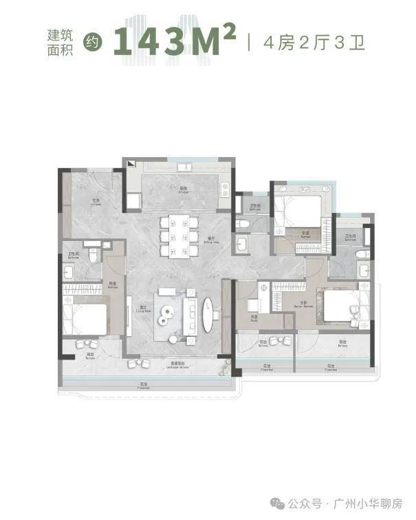 03单位|建面约143㎡︱4空间二厅三卫