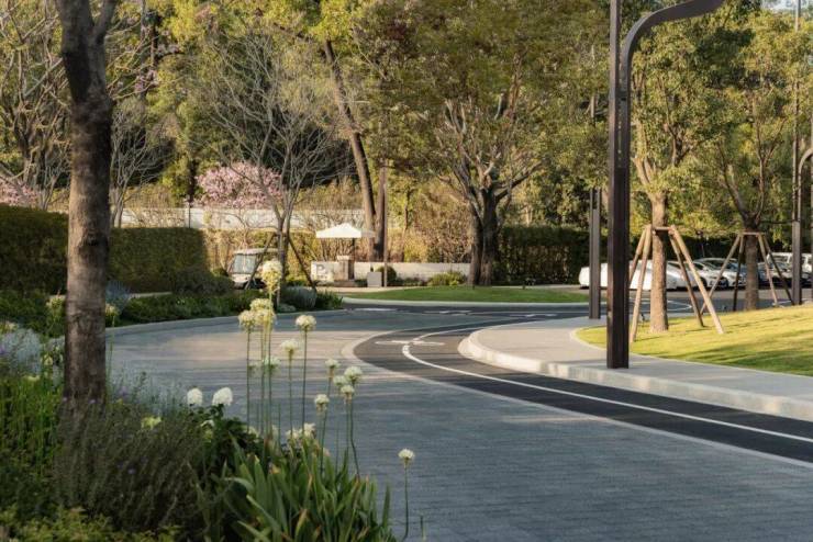承续自然底色,以绿意缝合下的情绪舒缓,让归家之路化作一场风景线,与湖面无界共融。