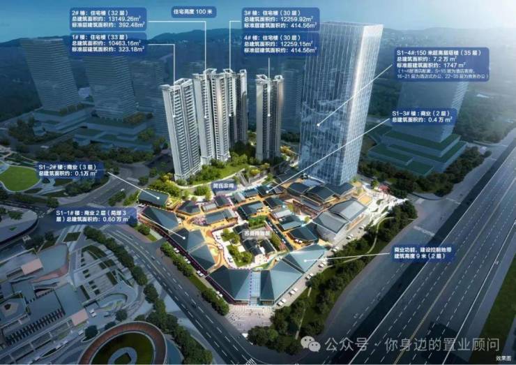项目总共包含3个地块,本次封顶的S1地块,为综合用地,涵盖商业、商务、酒店等,其中包括高149.8米,共计35层的综合楼配套。