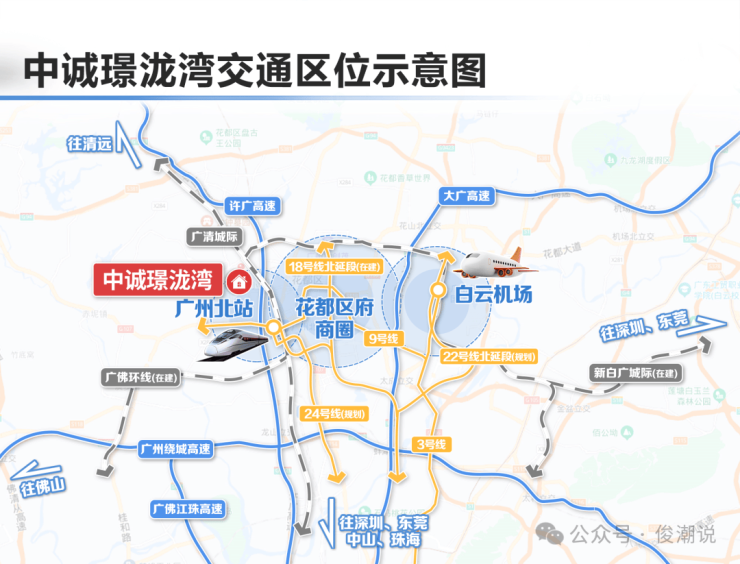 白云机场+广州北站,组成大湾区唯一空铁联运,定位“世界级枢纽群”。项目还坐拥“世界级机场+3地铁+2城轨+4高速”,轻松通达湾区乃至全国。