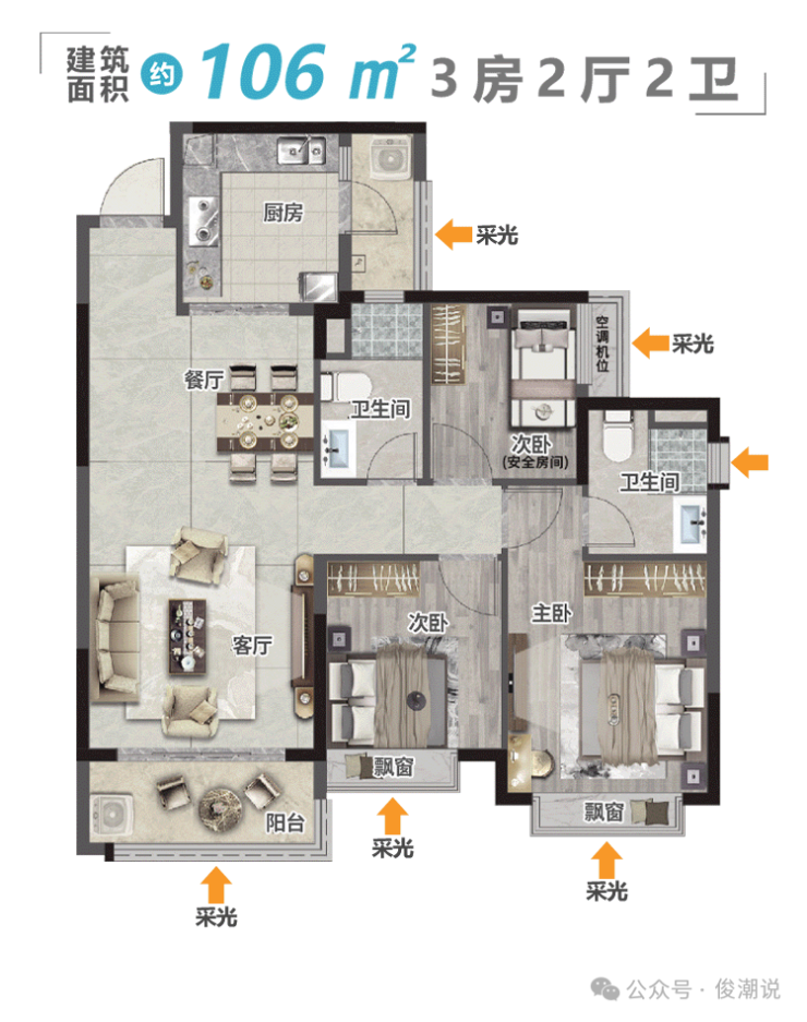 遵循美学之道,洞悉人居生活场景,造极56个魔鬼细节交标,打造现代轻奢风室内空间。搭载智能化家居体系,让科技赋能日常生活。