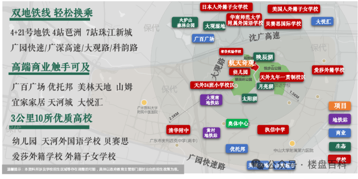 教育——自身配建6班幼儿园;周边有广州奥林匹克中学、越秀观樾配建24班小学,缦云广州配建的九年制学校(18班小学+27班中学)等多所高质量学校;