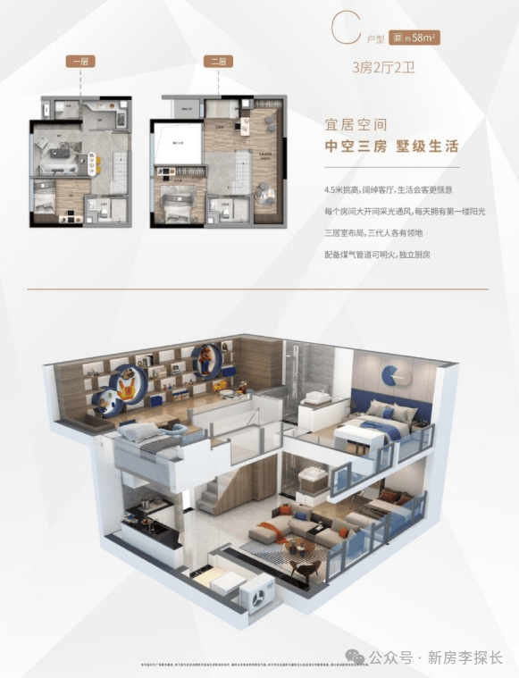 4.5 米 LOFT,中空挑高客厅,买一层用两层,带额外赠送空间,150%超高使用率;