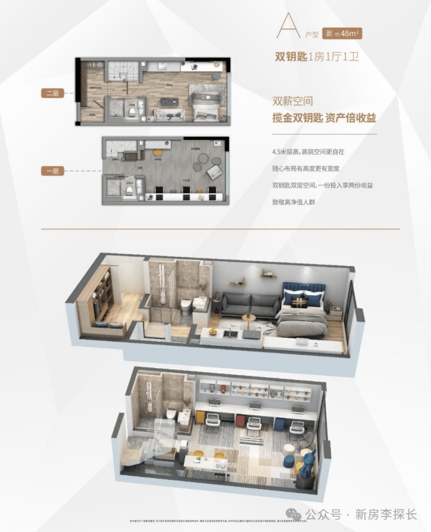 建筑面积约50㎡:双钥匙设计,适合双薪家庭,资产双倍收益,灵活布局。