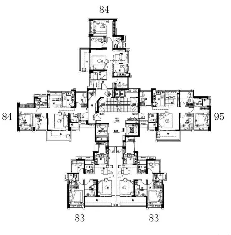84㎡3房:格局方正,南北通透,朝南朝向,采光充足,双阳台设计,动静分区清晰,得房率83.57%,适配刚需人群,满足三口之家及新婚夫妇日常居住需求,全明设计,主卧带卫生间和飘窗,实用性拉满