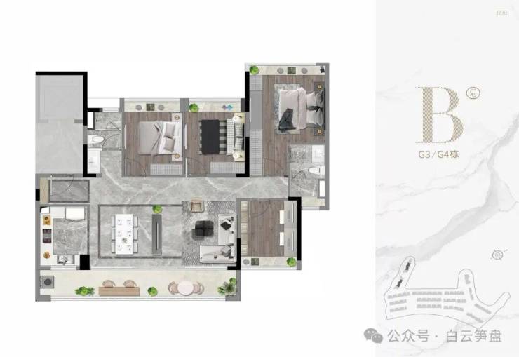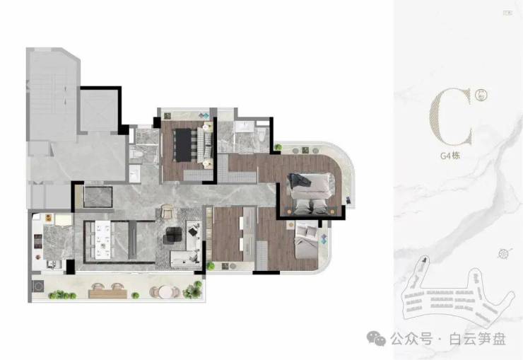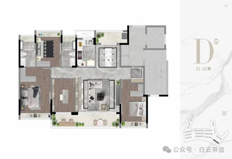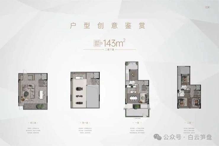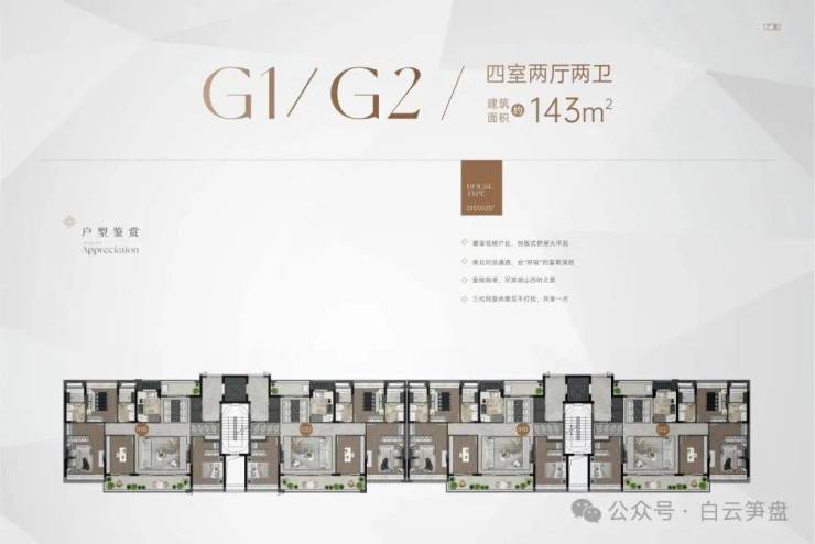 产品方面:目前处于清盘阶段,全盘皆为143㎡,包括改善型四房大平层,两梯两户板楼设计,143㎡(实用280-450㎡)叠墅,产品皆属顶尖改善型,户型产品力属全白白云区顶尖品质,单论产品力足以跟龙湖天奕/粤海云港城以及云和墅做对比,该盘密度极低绿化率高产品属于高端改善型产品;