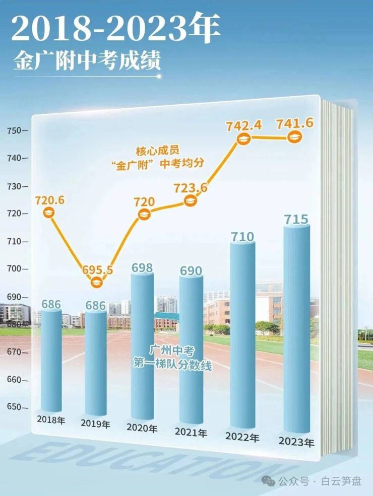 白云广附云湖学校师资亦是势力雄厚,近年来,白云广附中考成绩一直名列广州前茅,以白云广附核心学校金广附为例——继广州中考成绩五连冠后,2023年又拿下了广州中考平均分741.64分,最高分770的好成绩。2023年5月底,广州市招考办公布2023届广州中考自主招生初审名单,入围人数为全市之首。