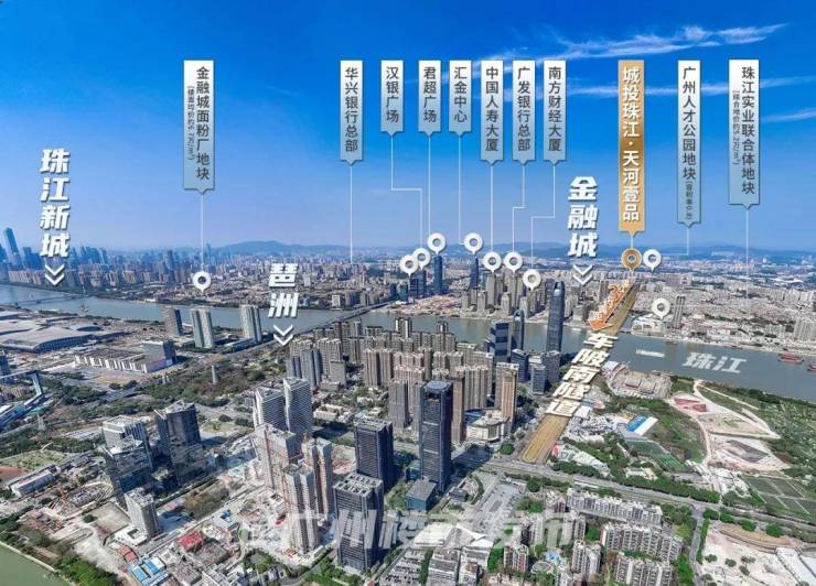 开发商为广州城投与珠江实业。广州城投集团成立于 2008 年,是专业从事城市基础设施投融资、建设、运营管理的千亿级大型国有企业,缔造了广州塔、海心沙、猎德大桥等城脉地标;珠江实业集团成立于 1979 年,是广州市属全资大型国有企业,打造了白天鹅宾馆、中国大酒店等多个广州标志性建筑,是广州市属国企中唯一的城市建设运营全产业链企业。