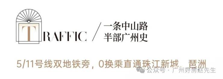 ◎双地铁出行:直线距离约500米地铁5号线、11号线(在建中)中山八站,0换乘直达白鹅潭、珠江新城CBD、琶洲CBD。
