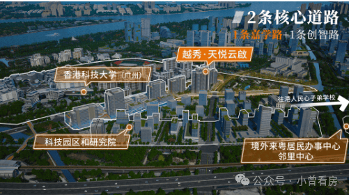 项目内设有"ipark粤港智谷产业园",已吸引80家企业计划入驻,包括多家知名上市公司关联子公司。依托港科大(广州)的强大科研实力,以及临近的民心港人子弟学校,项目形成了"校区、园区、社区"三区合一的发展格局,为入驻企业及其员工家属提供全方位的生活配套。