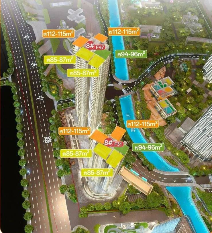 1#共47层,3梯5户,2#共31层,全盘都是南向户型。