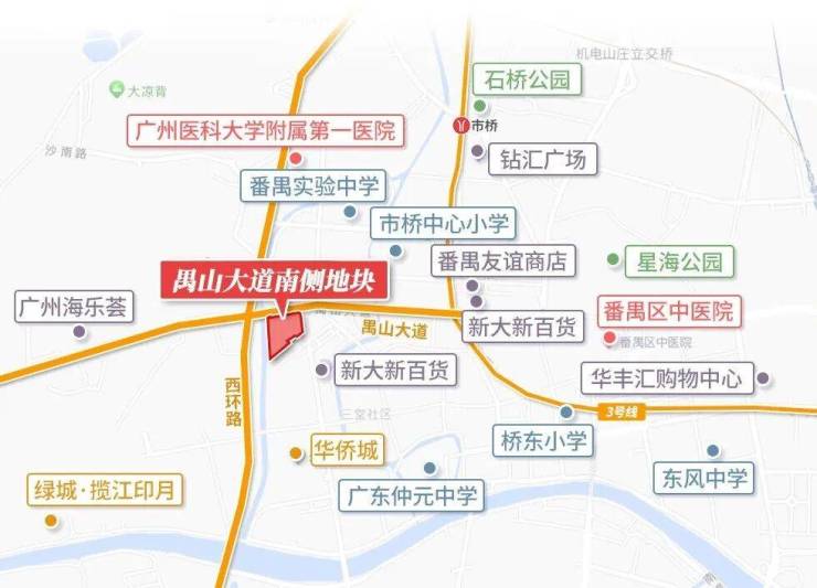 4km内3所甲级医院,番禺中心医院、番禺区中医院、何贤纪念医院均在侧,享受优质医疗,家人健康有保障!(直线距离,数据来源:百度地图)