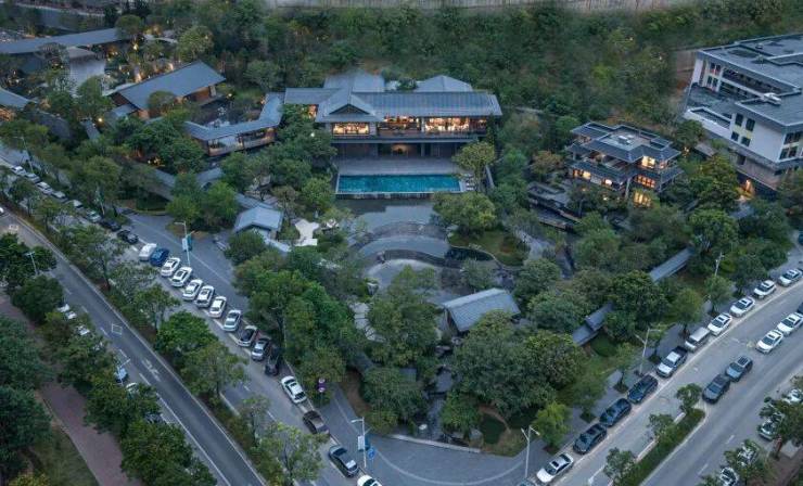 宋代建筑以白色与木色为主,项目则创新采用黑金配色,整体色调素雅自然。