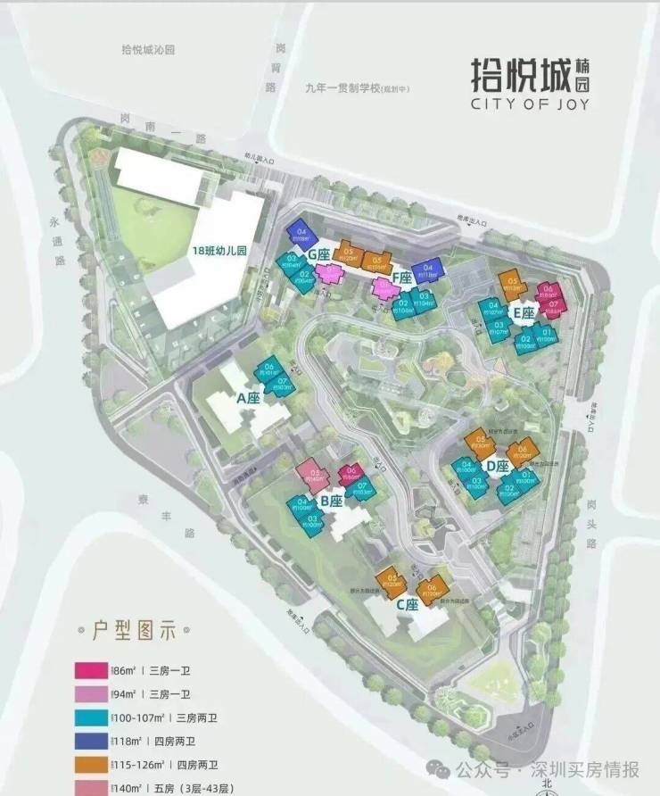 拾悦城二期占地约3.54万㎡,总建面约17万㎡,共规划了14栋30-48层超高层住宅、4栋26-33F高端写字楼及部分商业配套组成,还规划了一所36班九年一贯制学校、一所18班幼儿园。