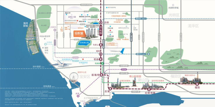 项目紧邻11号线沙井站约800米,5站到机场,8站通宝中,快速通达前海湾、后海总部基地,深超总、福田中心。