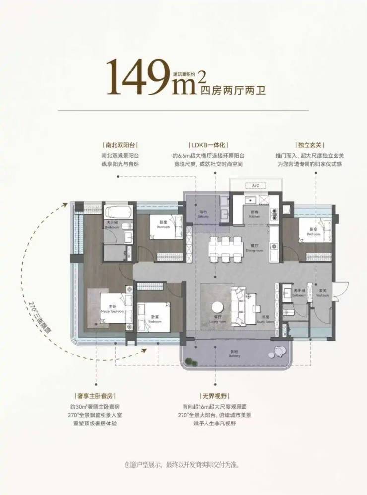本宣传资料为要约邀请,相关内容不排除因政府相关规划、规定及开发商未能控制的原因而发生变化。文中涉及项目周边环境、交通、商业、教育、医疗等配套的介绍,旨在提供相关信息,不代表本公司对此作出承诺。学校开学时间、招生条件、学区划分等以政府教育主管部门及校方的最新政策为准。本公司保留对宣传资料修改的权利,敬请留意最新资料。买卖双方的权利义务以双方签订的《商品房买卖合同》及其补充协议、附件等书面文件为准。