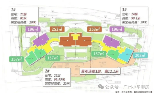 中间2栋为楼王单位,26层高,两梯两户,户型全部为253平大平层,层高达到3.3米。
