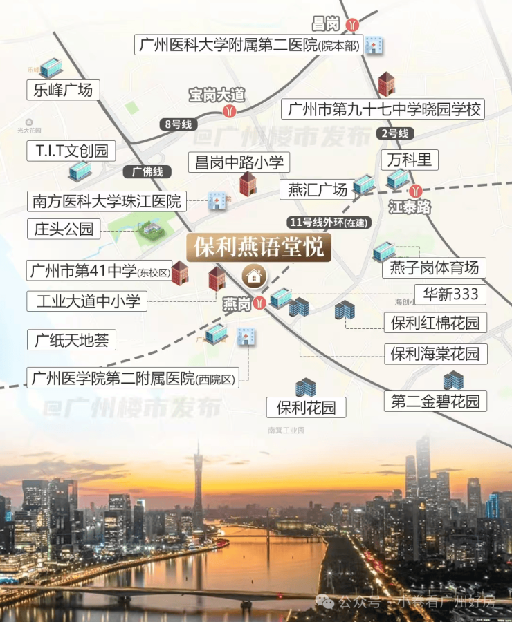 海珠西:海珠最宜居板块,拥有近6成海珠居住资源。保利燕语堂悦坐落于工业大道中,背靠珠江后航道,傲立于海珠新活力文商旅融合圈核心地带。