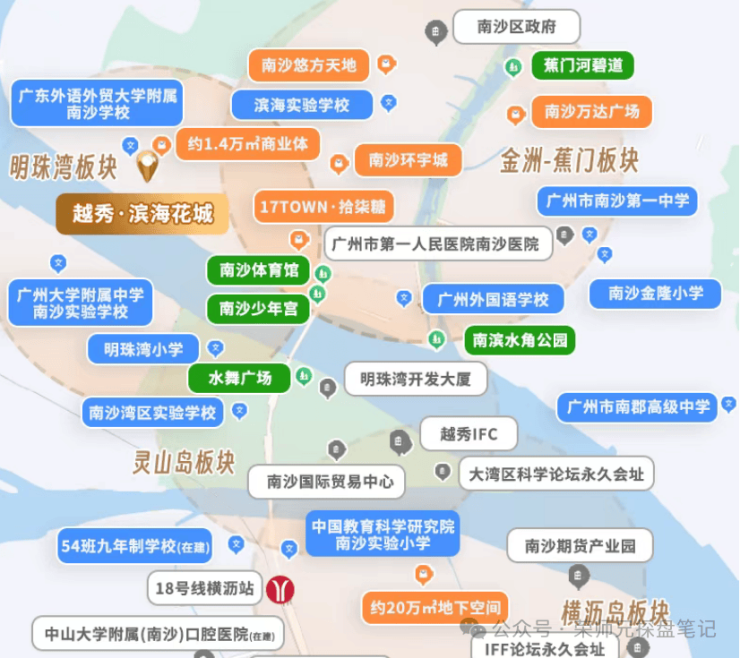 越秀滨海花城项目位于 明珠湾与金州蕉门双芯交汇处 ,六大商圈环伺,并配建 12年全龄教育 —— 广外南沙学校(54班)已开学 ;