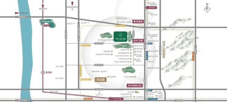 小区配套:约85万方恢弘大城,通过对设计之都板块生活配套的高效整合,聚集高端客群、促进产城融合,优化白云职住平衡;