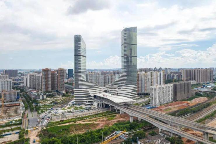 项目位于新塘TOD,是国内首个集高铁、城轨、地铁、城市公共交通、商业、市民广场等多种空间场景于一体的枢纽型城市综合体。