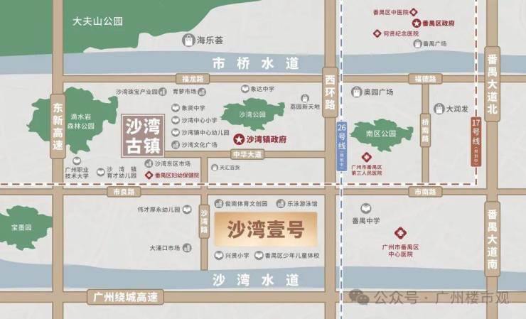 嘉业沙湾壹号位于沙湾板块,紧邻市良路与西环路双主干道,近享荔园新天地、奥园广场等繁华商圈。周边覆盖全龄段优质教育资源及番禺中心医院等医疗配套。未来双地铁(17/26号线【规划中】)加持,直通广州核心区域。