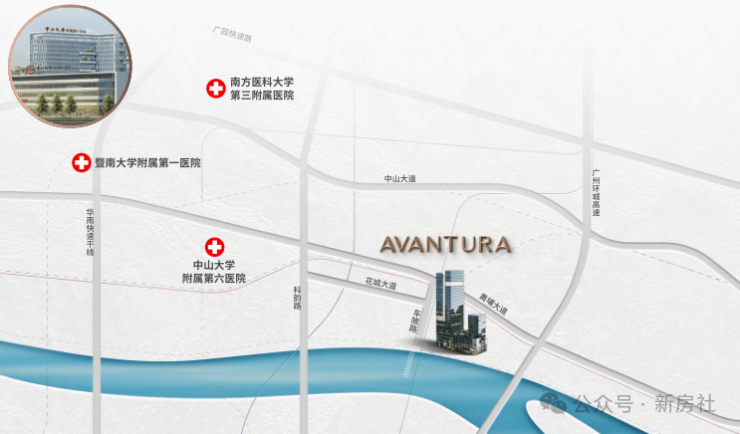项目周边拥有南方医科大学第三附属医院,中山大学附属第六医院,暨南大学附属第一医院,黄埔区中医院……等多家医院为业主健康保驾护航。