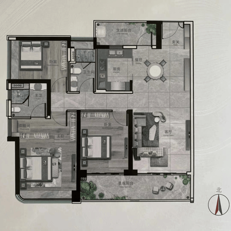7栋约255㎡奢华大宅,以“景观阳台+工作阳台”南北双阳台户型设计,创造通透对流的空间格局。四季清风穿堂拂过,带走空间热量与浊气,带来清爽的新鲜空气。