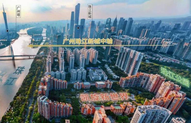 凯旋新世界,位于珠江新城东区黄金C位,南北被珠江与珠江公园温柔环抱,西望东西双塔勾勒的城市天际线,东接即将焕新的跑马场板块。和纽约上东区如出一辙(背靠中央公园,面向斯特河),并且依赖社区自身及周边丰富的顶尖配套,凯旋新世界为在这里生活的人提供了高浓度的醇熟CBD豪宅生活。