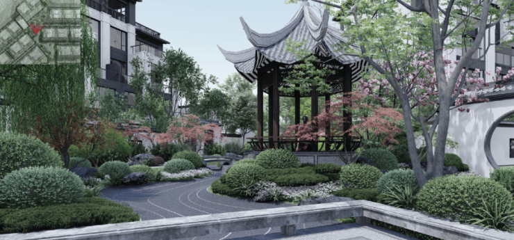 云谷组团占地面积约13316平米,以1.0超低容积率打造172户中式叠墅规划,户户均享私梯及温泉入户。追求极致东方美学,匠造“一庭二园四巷”致美园林,以中国山水人居观与东坡精神赋予云谷独特的山林栖居观景。