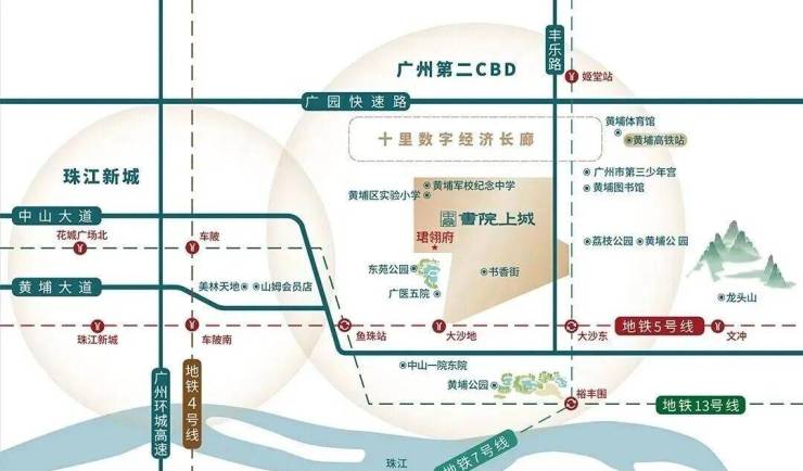 交通枢纽能级:距黄埔高铁站(规划10台25线)约2公里,实现湾区9城互联;