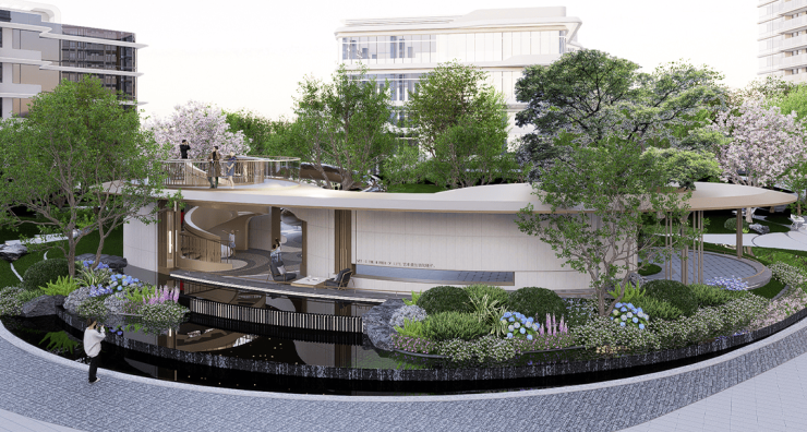 园林设计以"七境叠翠"为主题,打造四大景观序列: