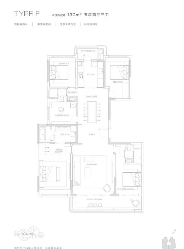 190产品为五房两厅三卫产品,充满了对云端人群生活的独特见解,南向双主卧,中西厨布局,打造纵向超长LDK一体化空间,产品所体现的不只是居住产品,更是特属客群所拥有的生活方式。