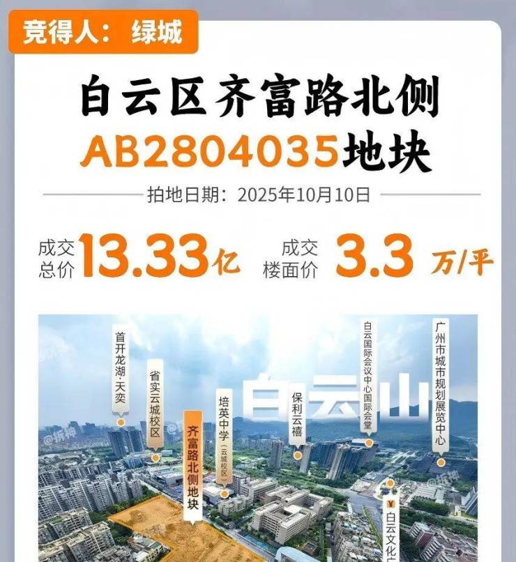 2025年10月10号,绿城以总价13.33亿拿下齐富路北侧地块,名义楼面价3.3万/平,地块可建设用地面积1.3万平,总建面4万平,容积率3.0。