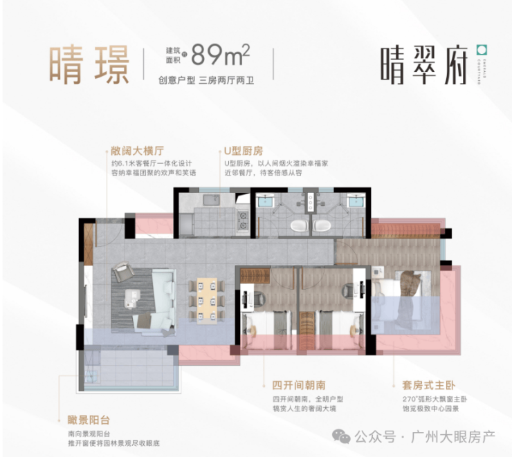 户型:建面约76-130 ㎡三至四房宽景臻品
