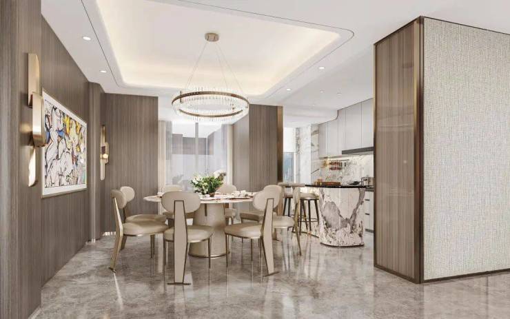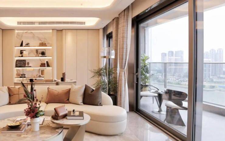 广州幸福湾在建筑设计上别具一格,以"云端生活"为理念,打造香槟金水波纹立面,弧形落地玻璃窗提供IMAX级别江景体验,户户皆可饱览珠江美景。10.2米挑高入户大堂及酒店式地下候车区彰显项目的高端属性。内部采用LDKG一体化设计,层高3.4-3.6米,国际一线品牌装修交标,为居住者提供极致舒适的居住体验。